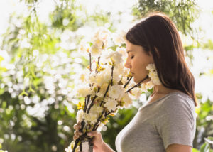 woman-smelling-white-flowers