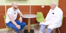 Чоловік звернувся в Odrex. Він спілкується лише англійською мовою, але для нашої лікарні це не стало перешкодою: нейрохірург Владислав Свєтлицький детально пояснив план лікування та відповів на всі запитання.